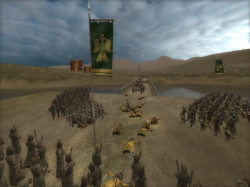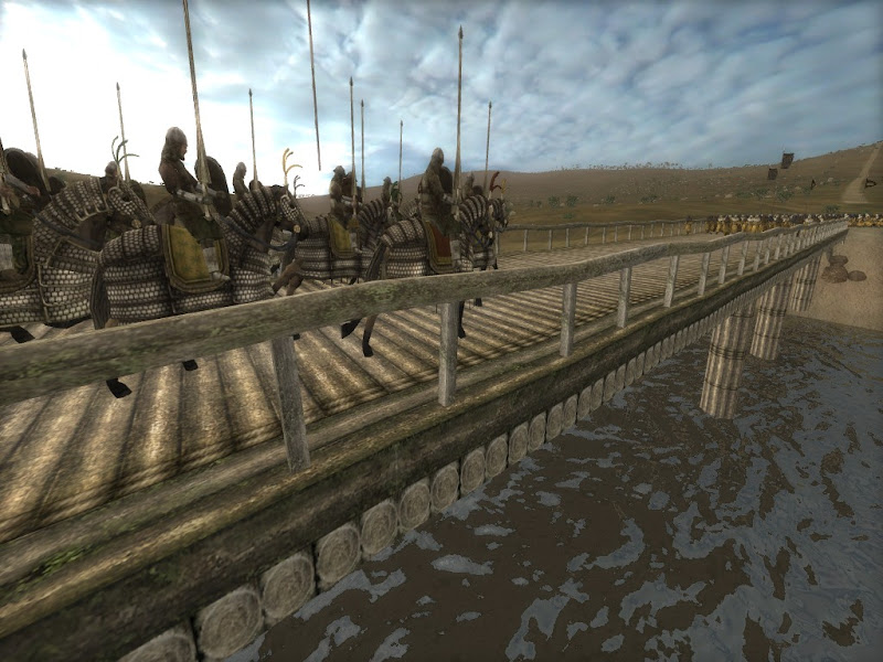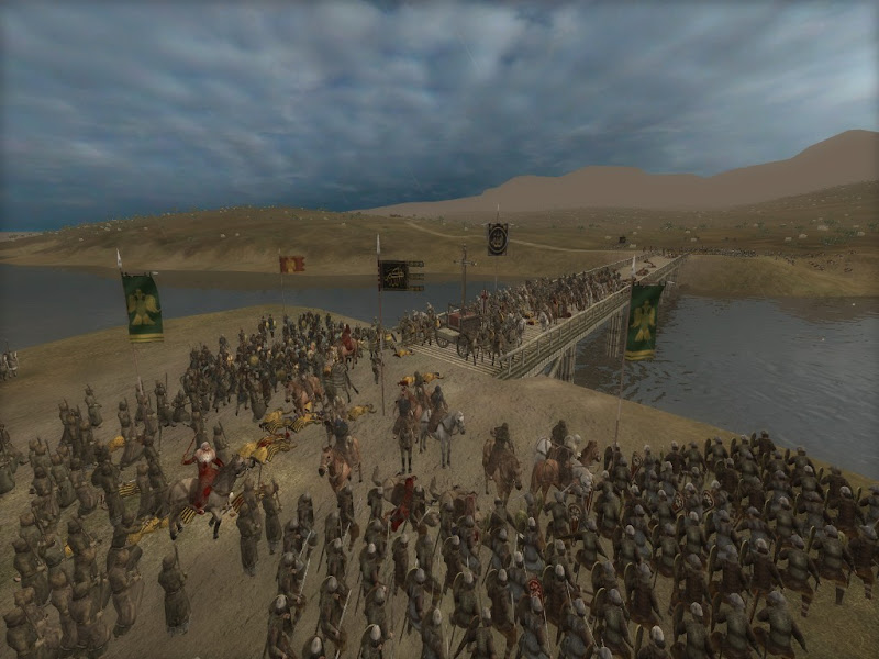 Stavros, the most experienced commander and by mutual agreement in overall control of the army, had a good cover of scouts out on both sides of the river. His men reported that the force on the western bank was comprised of only a few companies of light infantry and archers, while the army advancing on the west bank was far larger and led by a Saracen noble. Stavros' snap decision was to abandon the camp and force the bridge against the weak blocking force immediately. With a bright sun lighting the morning sky to the east Stavros and his company of Lancers thundered onto the bridge, fully expecting the enemy to lash out with a storm of arrows.
