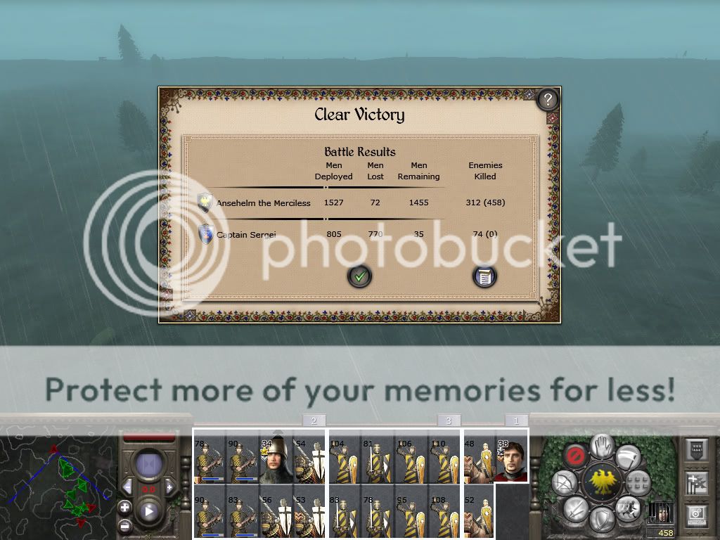 As with the last battle I won't bother to put a Battle Report up for it. So for those interested here are the beginning and end screens of each battle: