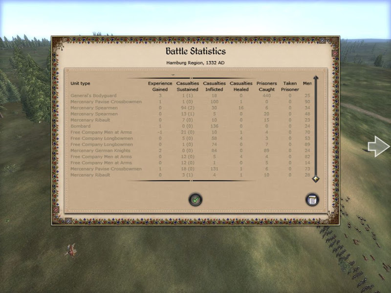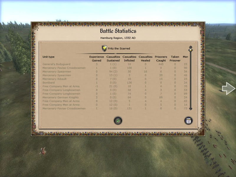 I am going to move the game forward on Sunday night, but there may be multiple battles during the AI turn, specifically for Fredericus Erlach (Stuperman), Arnold (AussieGiant), Peter von Kastilien (gibsonsg91921), and Lothar Steffen (me). Hopefully those can be done quickly enough so that I can post the 1334 turn report on Monday night.