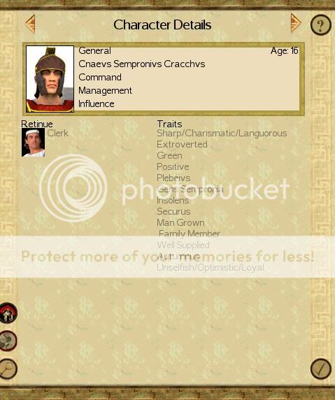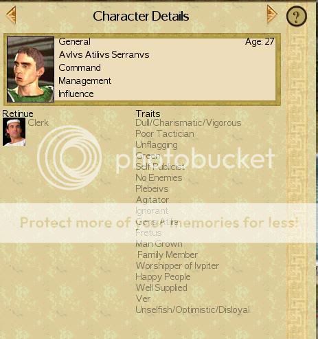 actually there's one guy (marcus Claudius Marcellus if I'm not wrong) who has very good traits from sitting in Rome since 267~ish and though he was controlled by another player, he didnt do anything, other than move him to Rome and sit around.
