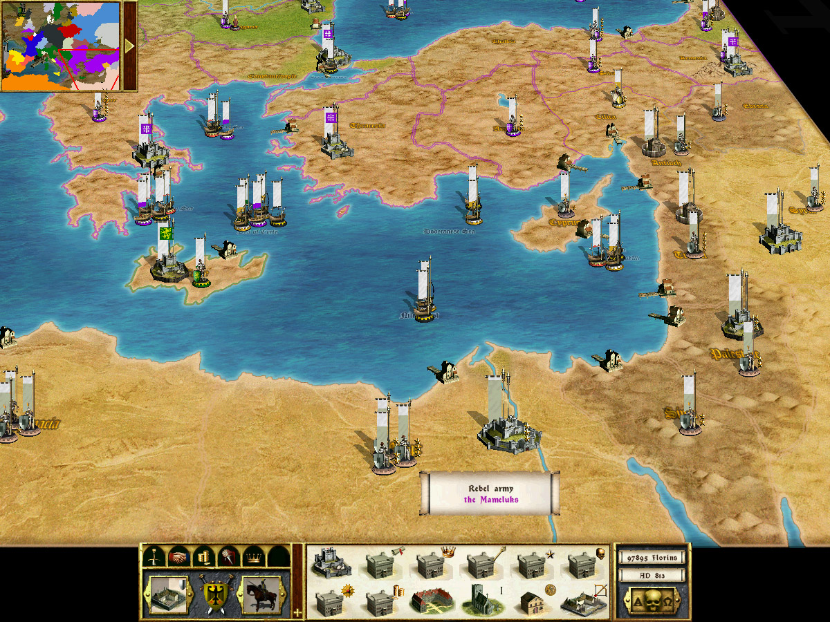 I also notice that there are a dominance of 4-5 factions in the seas. Byzantium, Saracens, Italy, Aragon and the Norse – All are classical (and the most likely) naval powers in redux in my experience. Is any of these powers even close to having a serious army anywhere? Or have they wasted all their resources on their fleets?