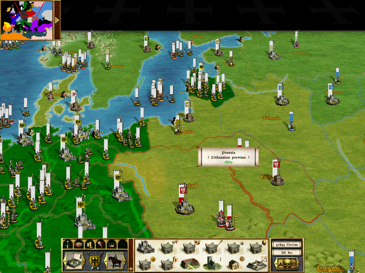 After 30 years fleets of multiple countries started to grow rapidly. Now, 42 years after start of the campaign, Danes, Aragonese, Italians, Byzantines and Egyptians have their ships all around the known world. So, I decided to break my isolation and get access to the seas too. Frisia and Saxony were the first. The next will be Pomerania and Flanders. Both still independent. Flanders has very nice infrastructure but big castle and strong garrison too. I'd like to get the province as intact as possible so I'll probably send my emissary to show them that their duty under the imperial standard can be much more lucrative with plenty of prospects and opportunities.